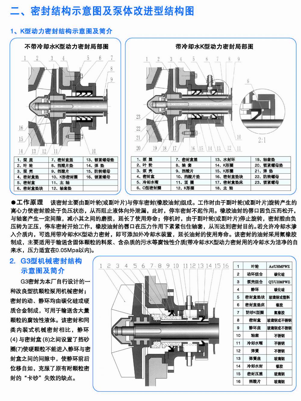 5.UHB-ZK系列耐腐耐磨泵,可根據用戶(hù)的要求安裝不同的密封。若無(wú)特殊要求,一般均裝配K型動(dòng)力密封。